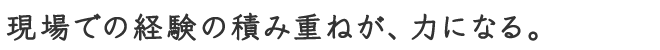 まだ業界経験の浅い私ですが、今後はさらにたくさんの物件を担当し、会社の規模拡大に貢献していきたいと思っています。そのためには、まず実際の現場での経験を積み重ねること。職人さんとのやりとりで専門知識を高め、オーナー様とのコミュニケーションで信頼関係を築くことが何よりの近道だと思っています。