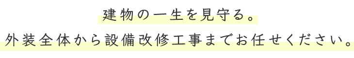 当社には、この地域で多くの建物の改修工事を手掛けてきた実績があります。必要最低限の費用で建物の資産価値を飛躍的に向上させる提案を行なうことができるのです。建物のプロとして、オーナー様の大切な建物を中長期的な視点でケアし続けていきます。